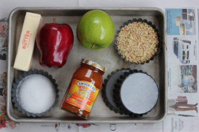 Once baked, top the sliced apples with thinned apricot preserves. Enjoy.