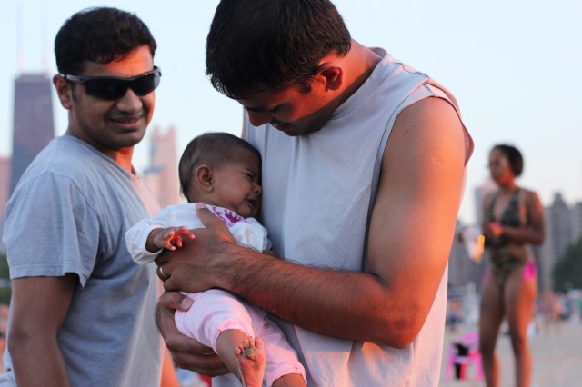 North Avenue Beach was packed. A thin mist of sand hung in the air from the many volleyball games going on around us. Asha looked around as if she had landed on Mars. She was so intrigued and excited by the whole scene. Her tiny feet liked the dry sand but not so much the water. I stayed with her and read my book while Devang played volleyball. Then we took some beautiful pictures and called it a day.