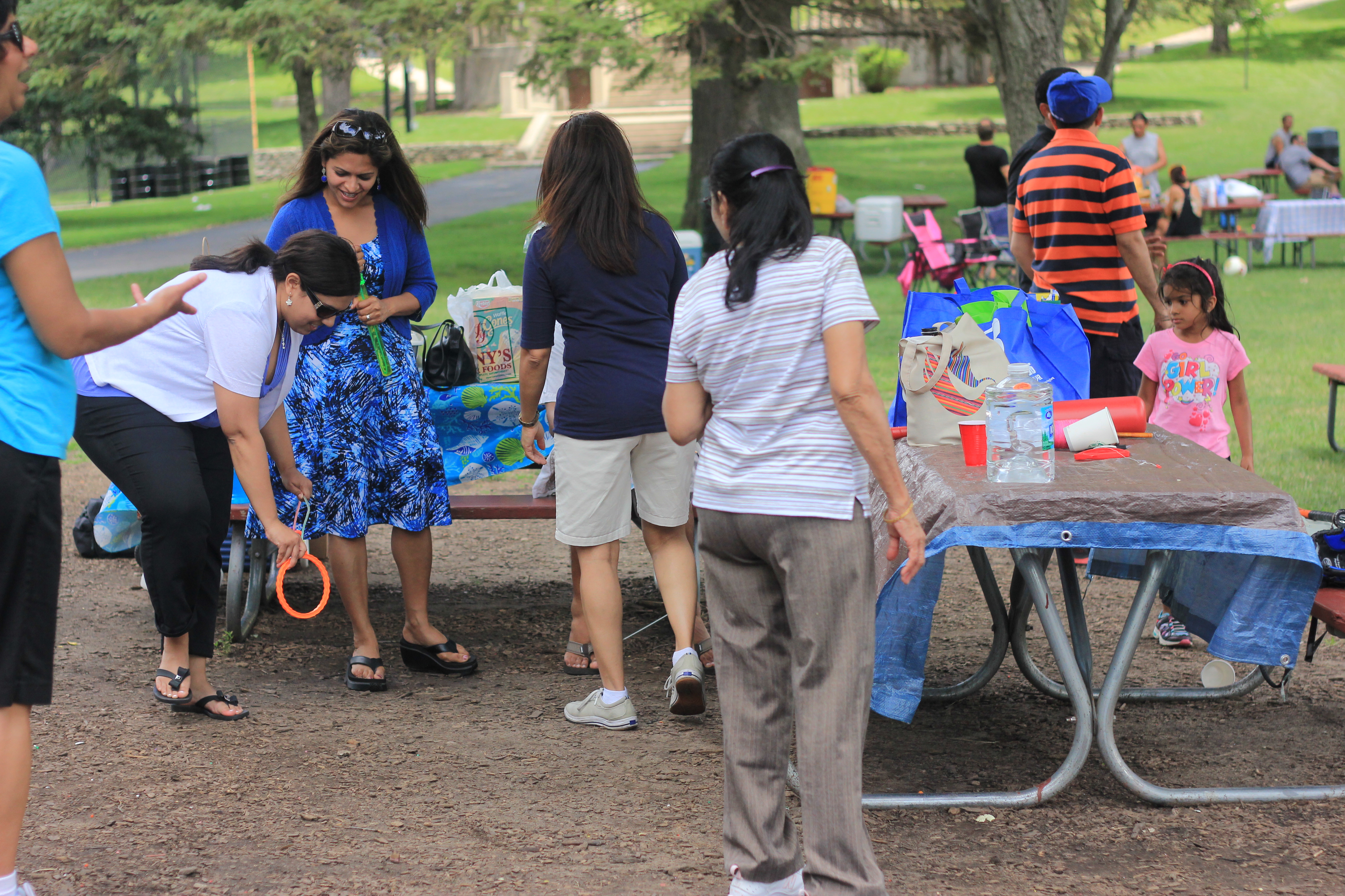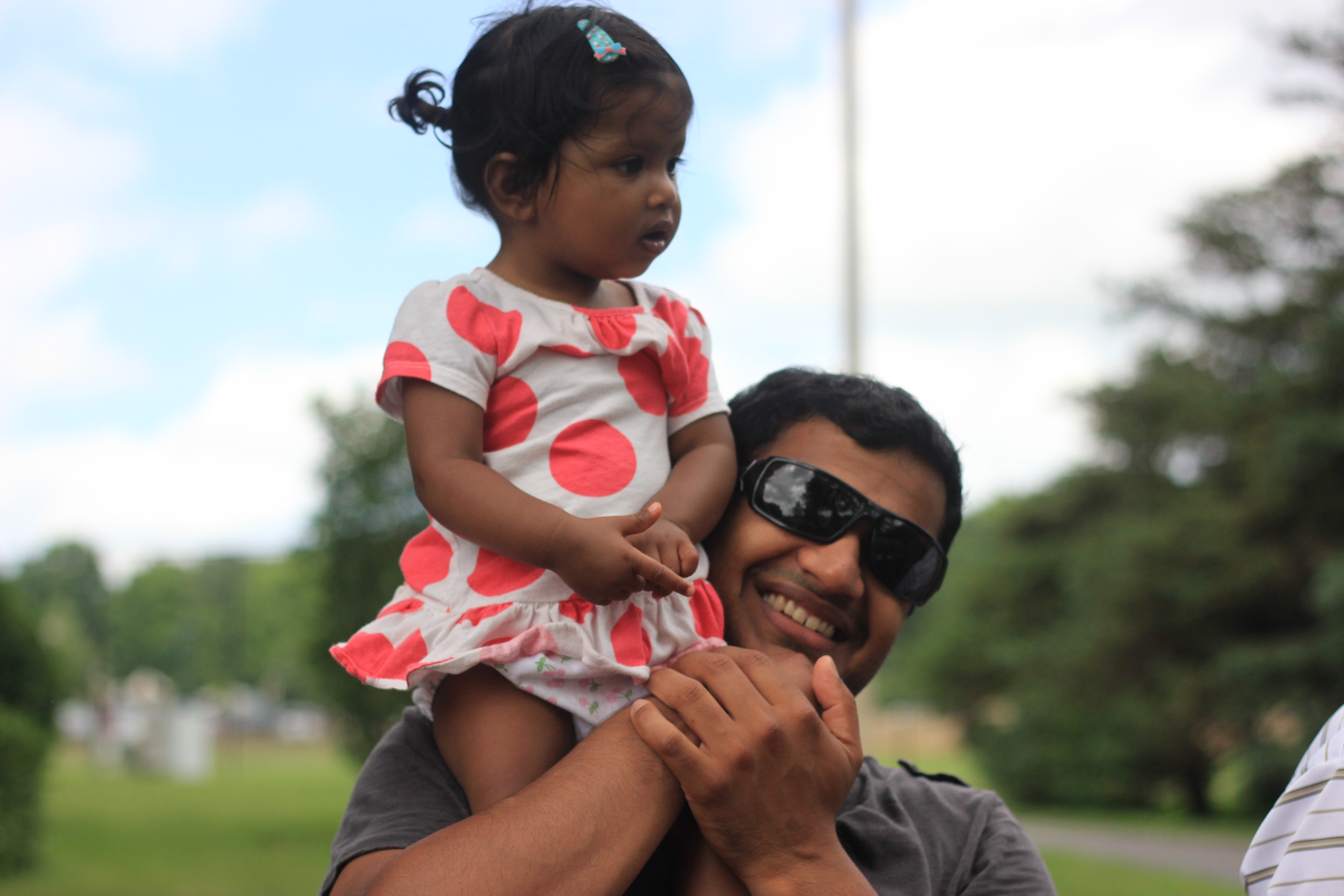 The picnic was at Pottawatomie Park and we could already smell the grilling corn from the parking lot. The number of kids in the family seems to multiple at each year’s picnic and I couldn’t get enough of the little kiddies some of whom are younger than Asha. Seeing the older kids running around, Asha wanted to practice too. I feel like she is just days away from being able to walk without support. I must have taken about a hundred pictures of her holding daddy’s hand and putting her legs to work (totally heart melting).