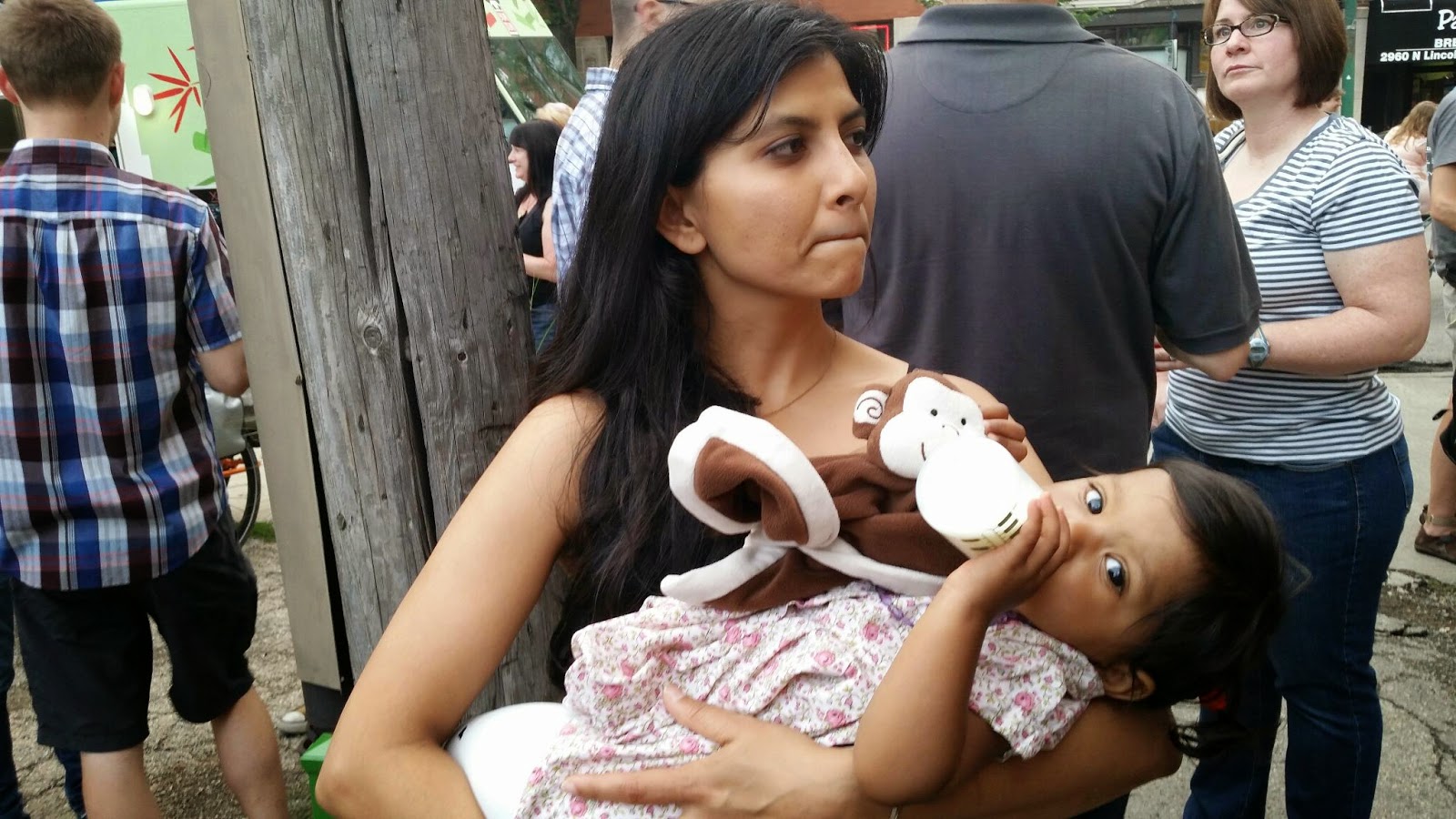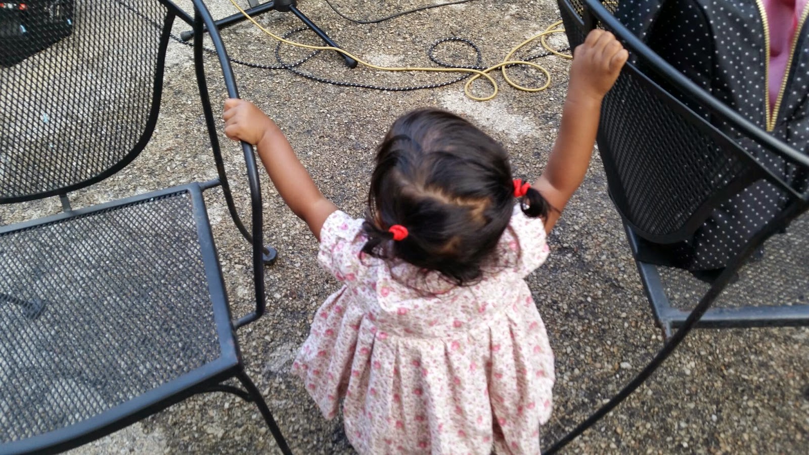 The evening looked promising all day long, but then the sky darkened and I was sure that we were about to have another mega storm. However, the showers passed and the weather couldn’t have been better. It is so easy to take care of Asha when we are doing something outdoors. This evening she had a great time making new friends, dancing to the music, trying to get into people’s beer cups, (almost) licking the green fence, walking around, and exploring.