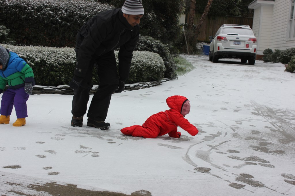 Asha and Arjun kept peeking out the windows and doors amazed at the dusting of white. We lost power for an hour or so on Friday evening right after dinner but that’s what camping lanterns are for. Other than that, it has been mostly uneventful and might I add, fun!