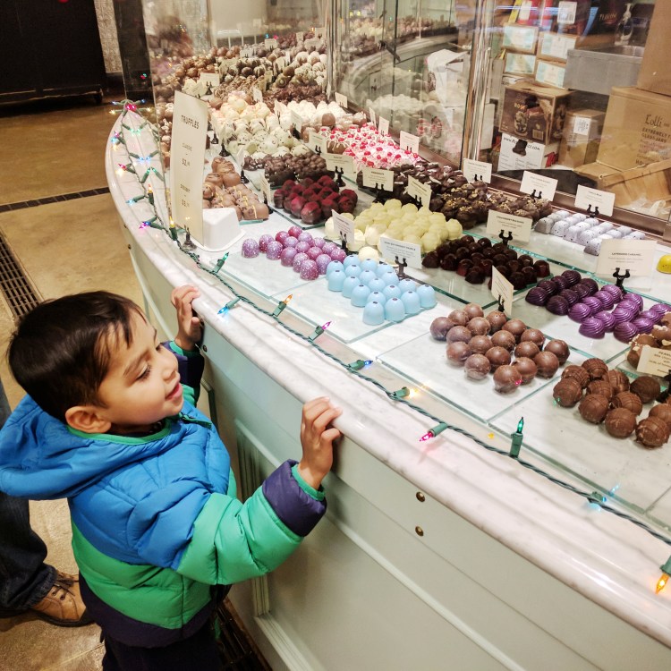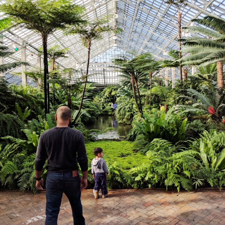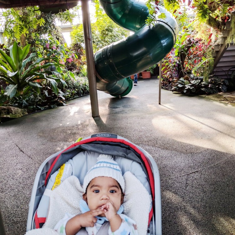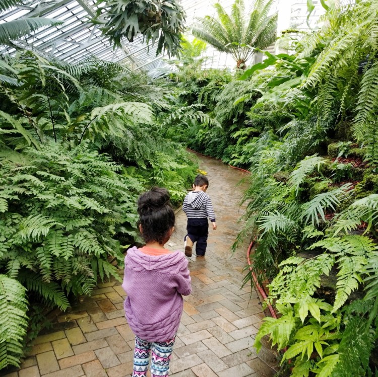 Next morning, Stanley’s loot made for a good breakfast for the kids, and we got our favorite coconut latte at Ipsento. Well fueled, off we went to one of Devang’s favorite places – Garfield Park Conservatory. Once inside and surrounded by all the tropical foliage, we forgot that it was snowing outside. It felt like we were walking around in a rain forest somewhere. I still don’t know how this place is free!! By the time we finished, I felt like my lungs had gained five extra years of life after breathing in all that good air!