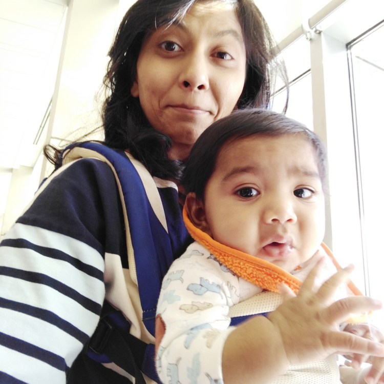 Later, Ajay and I took the train to my old office to see colleagues and reminisce about having a job, ha! After getting off at my “usual” stop, I realized it didn’t have an elevator. So I took off the carseat, collapsed the stroller, and carried it up the stairs. Once up, I realized the door to the building wasn’t wide enough and the side door was tricky and so heavy because of the wind tunnel effect. It took me just as much time to get up to my office as it did to get to the train stop in the first place!! So yeah, may be this was one time when I didn’t mind living in a place where you just drive up to places! It felt so surreal being in the lobby of the Chase building! It was pretty and festive just as I had remembered.