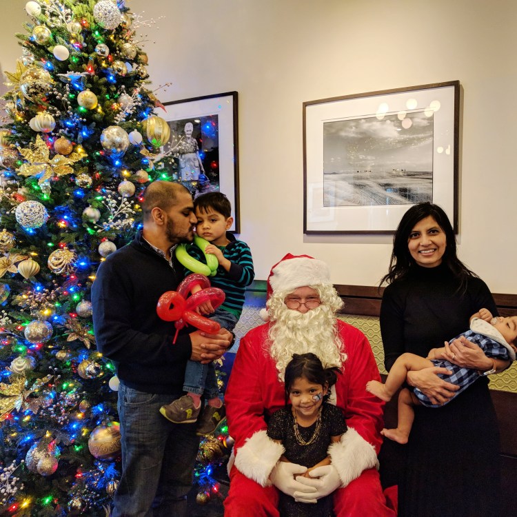 The next morning we decided to check out another neighborhood of ours where we rented an apartment before having kids. Gold Coast is one of the most magical places I have ever lived in. It was amazing to see our old high rise surrounded by a new one, even taller and shinier! Luckily a friend had recently moved in there and so we got to check out the view, which for a hot minute, made me want to move back!! You guys, it was so beautiful! Then, after a stroll down Old Town, Lakeshore Drive, and Michigan Avenue, we bid farewell to Chicago and headed to see our family and celebrate our nephew’s first birthday in Bourbonnais. While there, we even got to take our first ever family picture with Santa, thanks to a birthday party miracle! In a way, the credit for this amazing trip goes to the little guy without whom we wouldn’t have planned any of this anytime soon.
