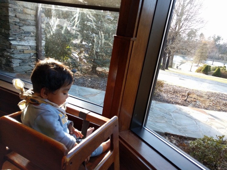 The next day, we woke up to a chilly but beautiful morning. From our balcony we could see the lake covered with fog and it all seemed very whimsical and pretty! After a breakfast at the Inn, we spent the rest of the day driving on winding roads and exploring the vistas of Grandfather mountain. First, was the walk across the swinging bridge. At a mile-high, it was breathtaking, if not a bit scary too because of the cold howling winds! We had bundled the kids in the gift shop, including putting Ajay in a sling, and Arjun in a hiking carrier (that child of mine has the worst wiggles especially in very dangerous places). This bridge is a big draw for tourists in the high season, and I’ve heard of how crazy busy it gets here in the warmer months. But on that day, we had the whole place to ourselves and it felt thrilling!