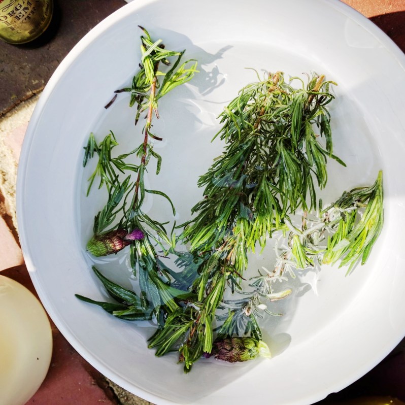 Using no special recipe, I basically melted a couple of tablespoons of coconut oil and added white granulated sugar to it until it resembled wet beach sand. Then I added a few sprigs of lavender which grows in our yard along with a couple of drops of lemon extract which I use for baking. Long story short, the spa-date was a hit for my RMB story, but more importantly, I came away wishing I had A LOT more of that scrub.