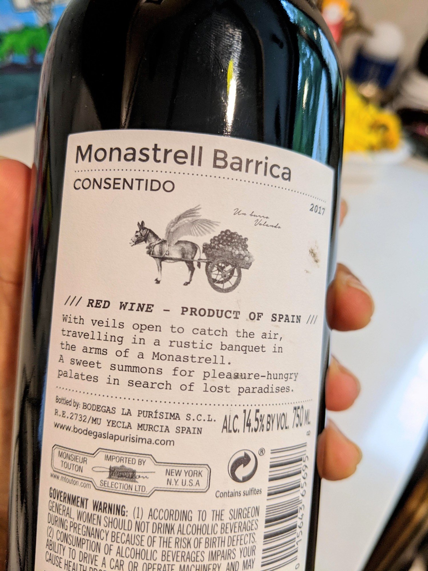 via CONSENTIDO Monastrell Barrica. Red Wine. Product of Spain.