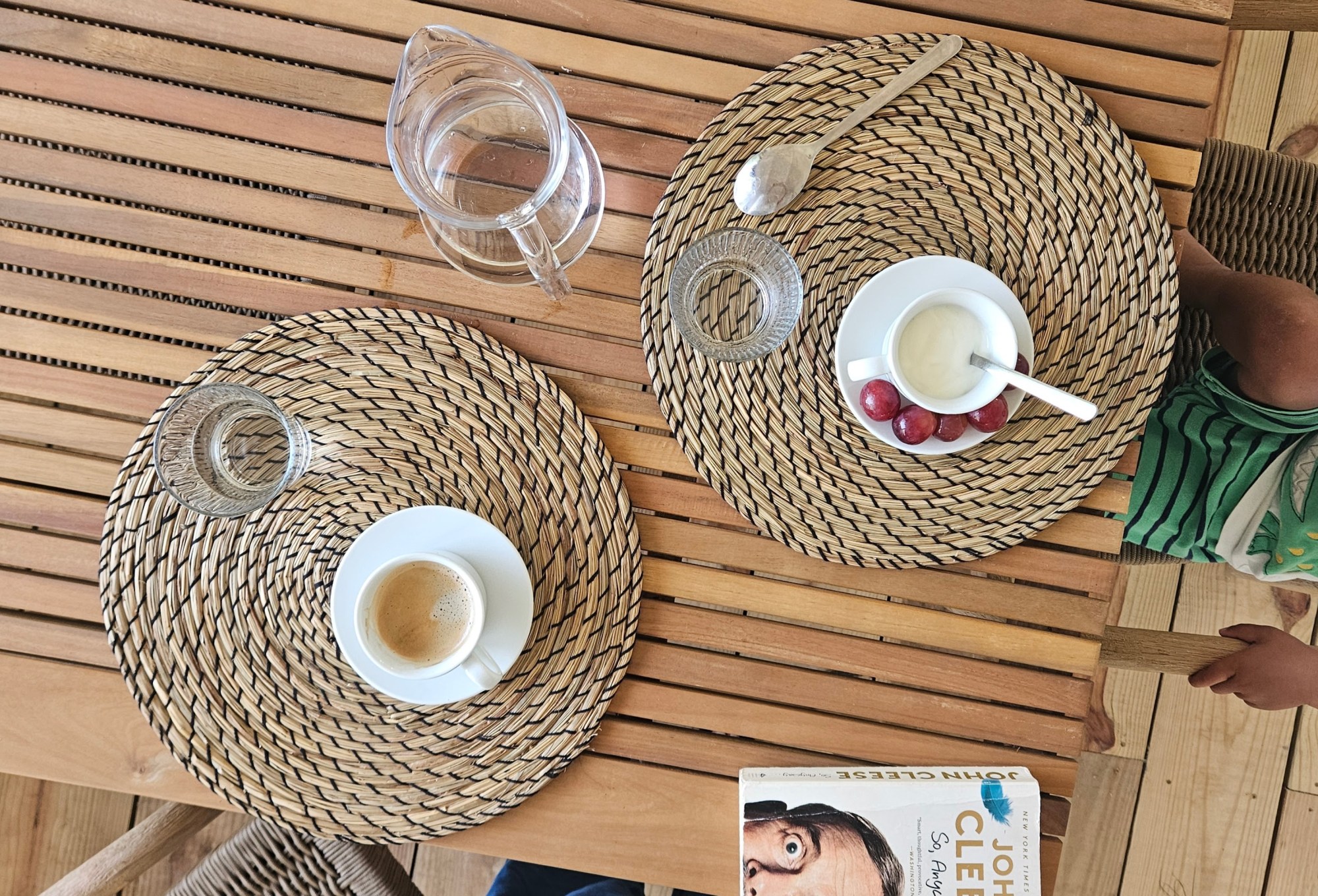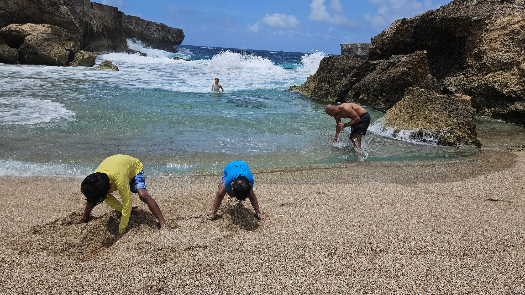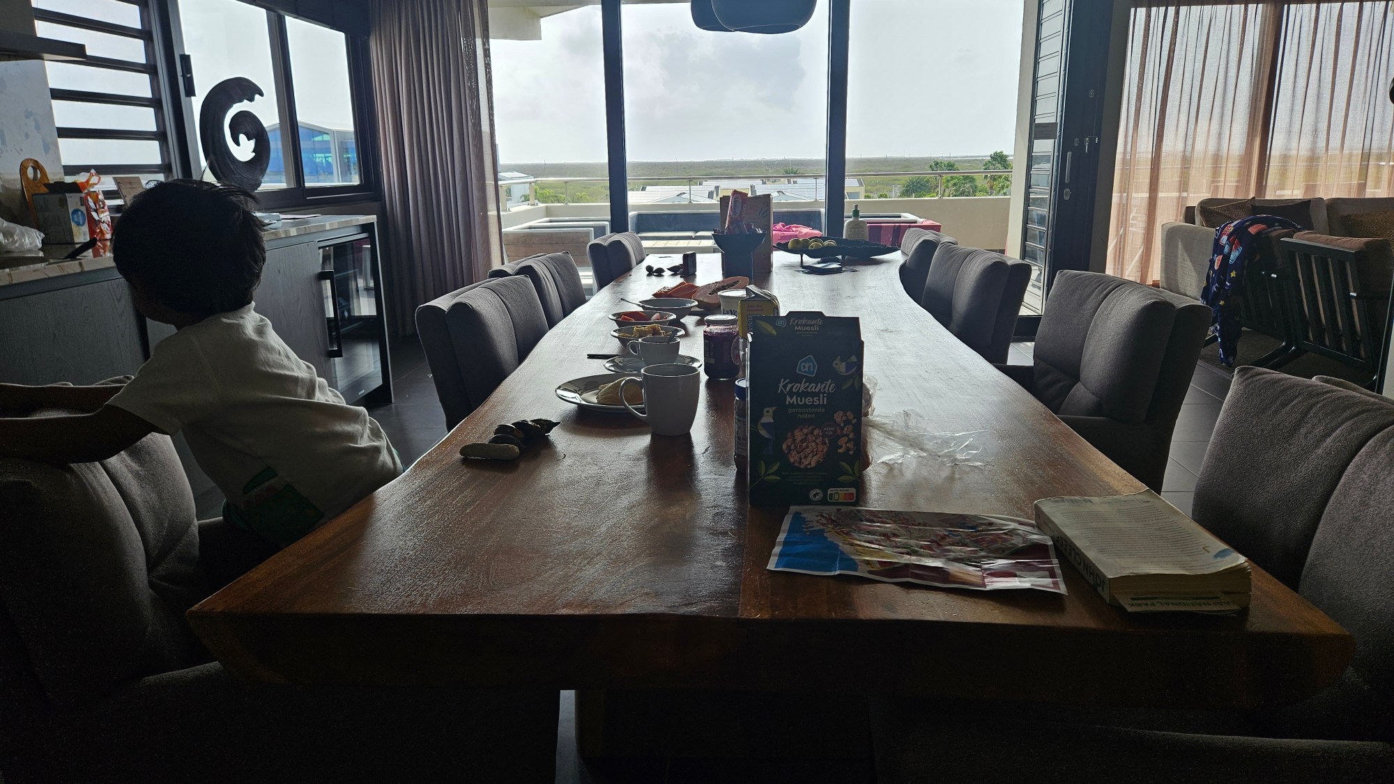 Day 5: Breakfast at home. Check-out of Hotel Delphin’s. Laundry drop off at the local laundromat. Arjun + Mom kayaking in the mangroves. Take-out lunch from a delicious food-bus called Stoked. Check-in at the extremely unique and gorgeous hotel called Sorobon Luxury Beach Resort on the east side of the island. Pool time. Delicious dinner at hotel restaurant called Reef Bar.