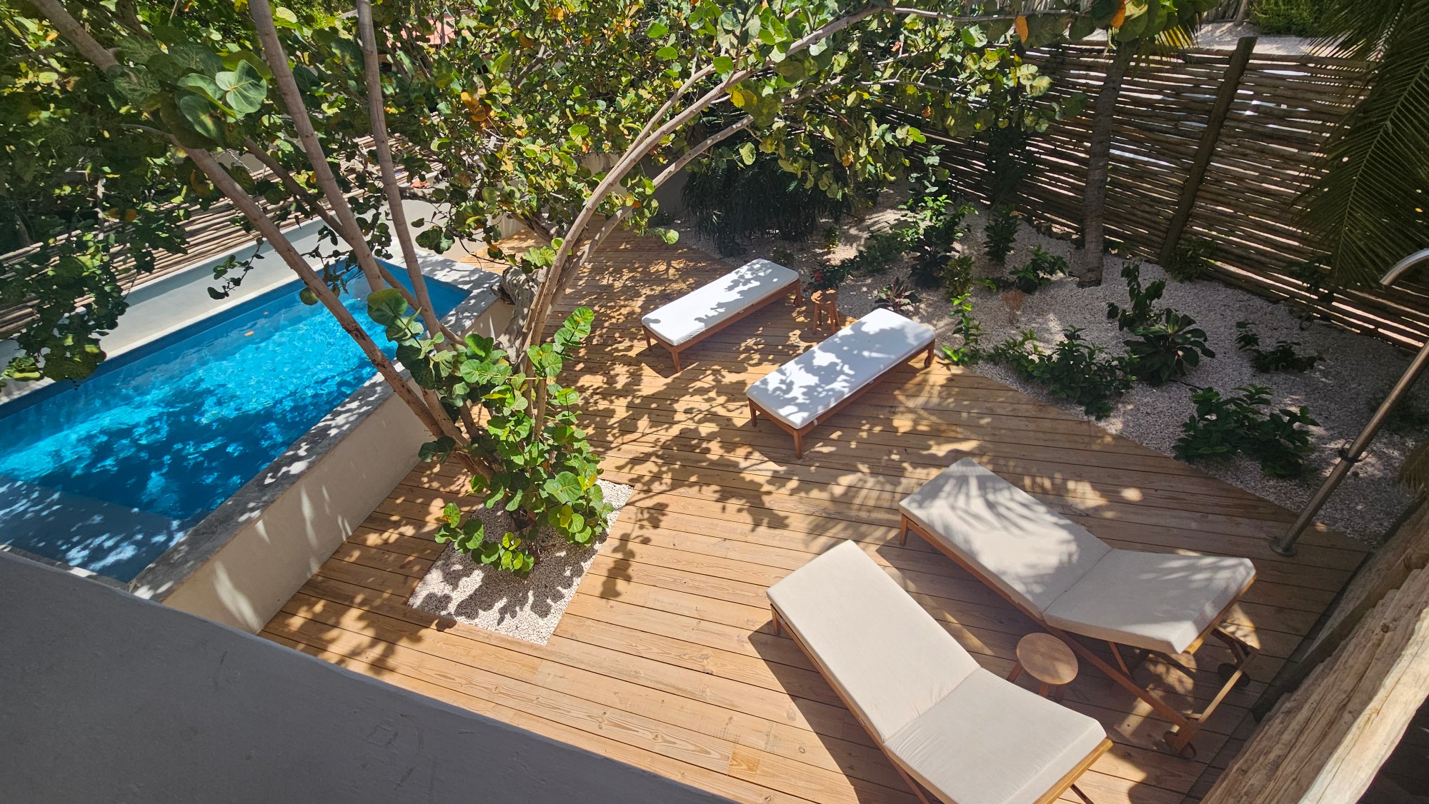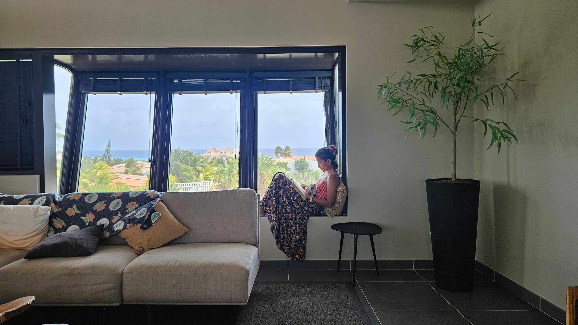 - A fun fact: Sorobon Beach Resort used to be a nudeist resort the last time we were here over a decade and a half ago. Now it is this uber cool resort for all. We booked the Kas Grande villa since there are 6 of us. It came with a private pool and a wrap-around balcony. Oh and there are no TVs anywhere in the hotel rooms or common areas. They were not missed at all!