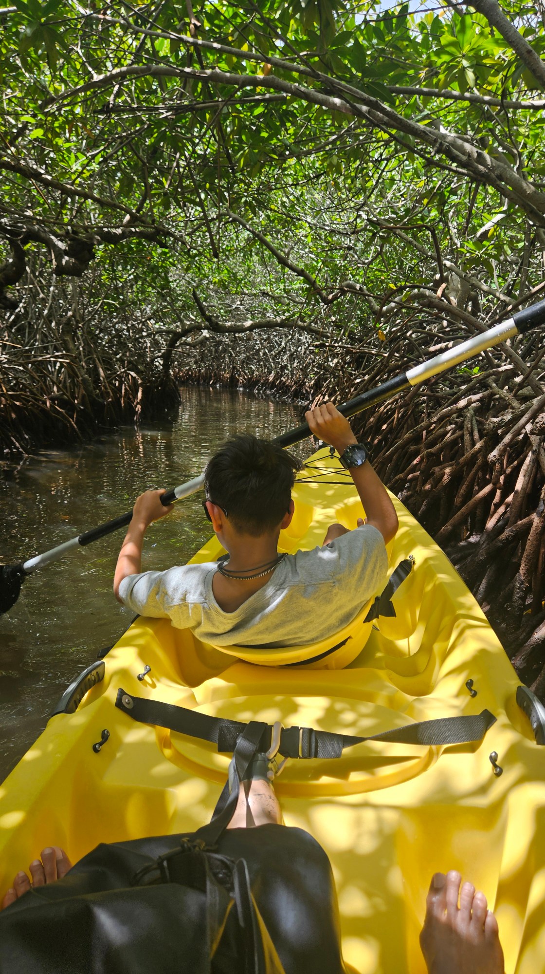 Day 7: Breakfast at home. Beach play for some. Kayaking the mangroves for Ajay and Dev. Lunch on the beach from the Reef Bar. More beach time and cocktails. Walk around downtown. Excellent dinner of Peruvian chicken and seafood at Perù. Gelato at Gio’s