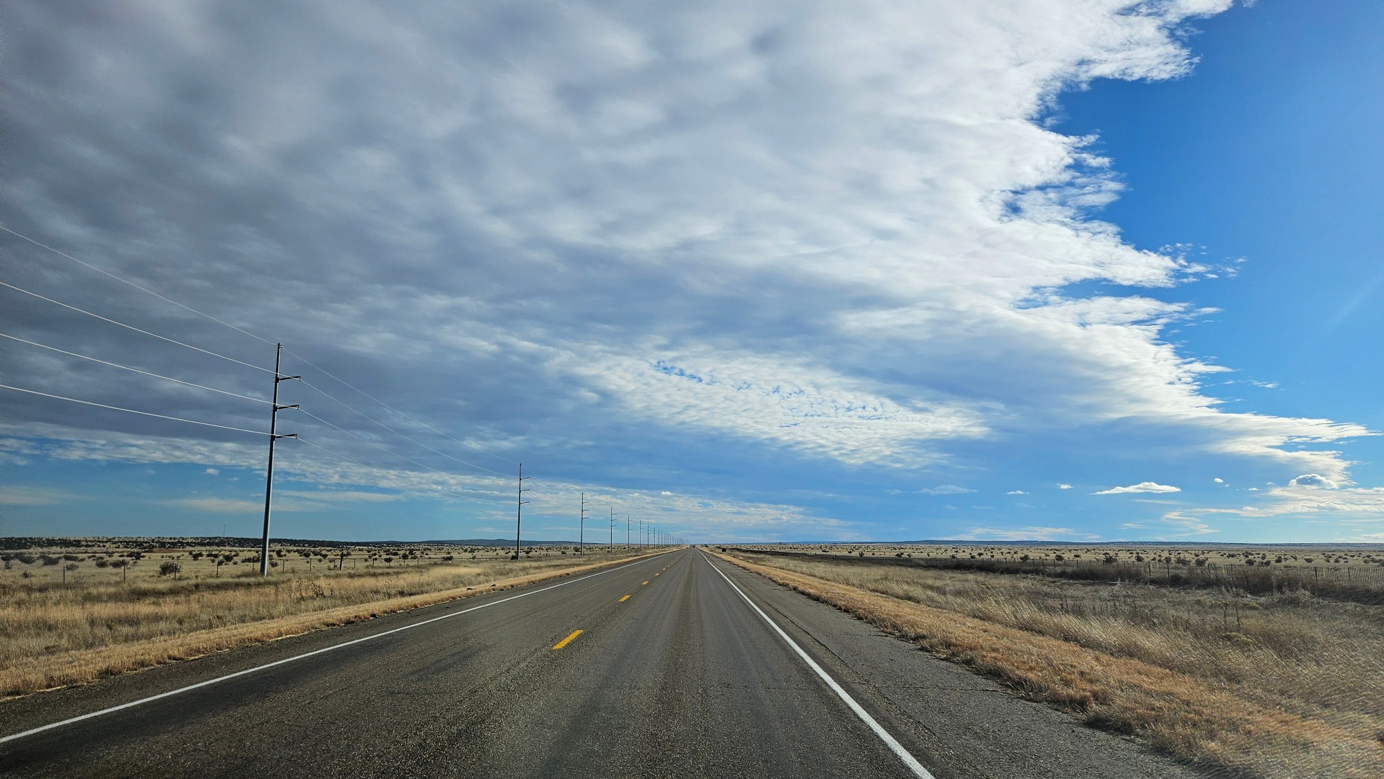 Hello from somewhere out in New Mexico and Texas. Where the roads are so straight you could take a nap, wake up and still be driving straight. Where the open space is mind bogglingly vast. Where the sunsets are so golden. Where the clouds are so dramatic.